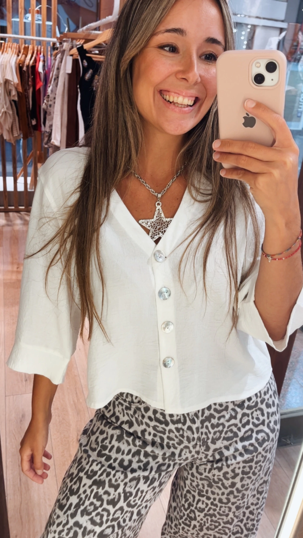 Con manga 3/4, podés usarla como camisa o como saquito abierto con algo abajo, ¡ideal para cualquier ocasión!